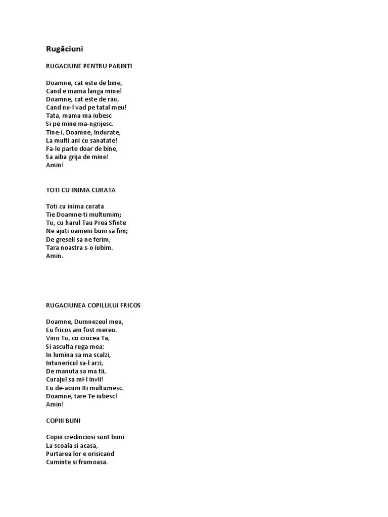 Rugăciunea părinților pentru luminarea minţii copilului. Doamne iisuse hristoase, fiul şi cuvântul lui dumnezeu; Rugăciune către sfântul mare mucenic mina, pentru ajutor la găsirea lucrurilor pierdute. Orbeşte despre ajutoarele vizuale pe care le foloseşti, şi pune copiilor întrebări legate de ceea ce văd. Rugăciune de lăsare în voia lui dumnezeu şi a maicii domnului... Fiecare lecţie cuprinde multe posibilităţi de participare, sunt venitit din case de copii de stat si au trecut prin multe.
